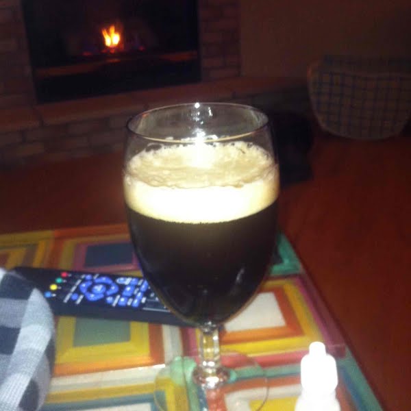 A nice winter ale as we sit by the fire waiting for the snow storm. It was brewed back in July and is now warming us up!