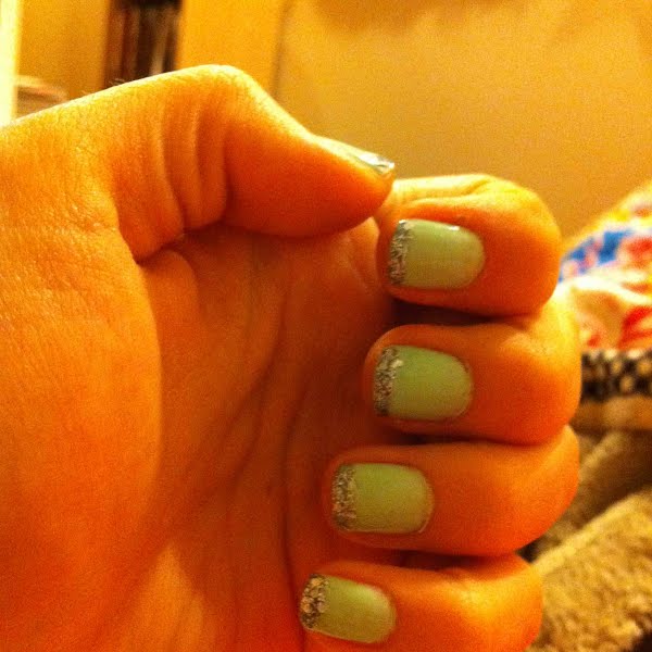 My Seafoam Green Nails With Silver Glitter