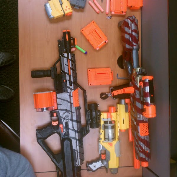 Moded nerf guns, office desk