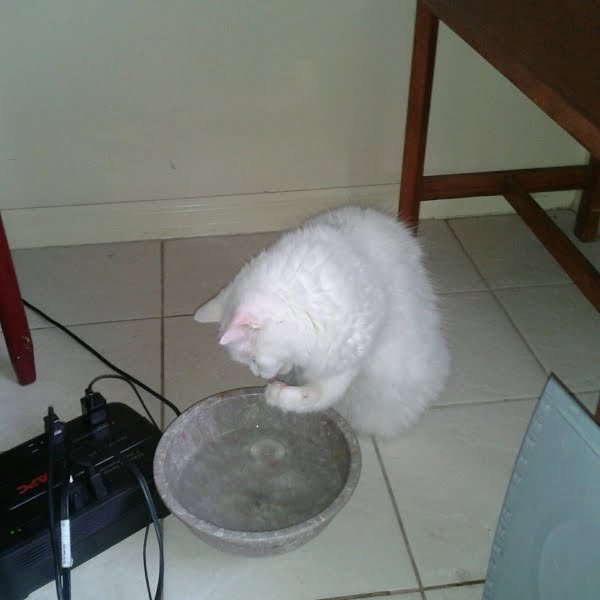 He'll only drink with his paw, gets water everywhere!