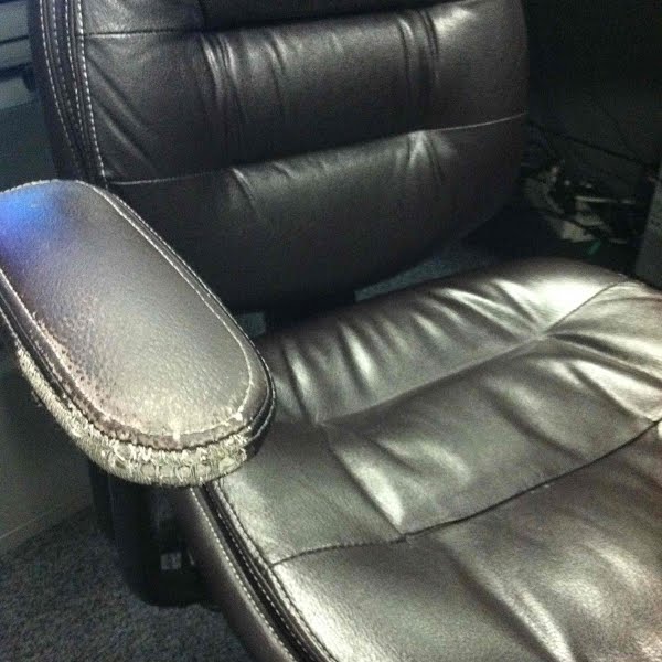 Blown cushions and highly worn armrests make for an office eyesore. Reminiscent of lawn cars in West Virginia.