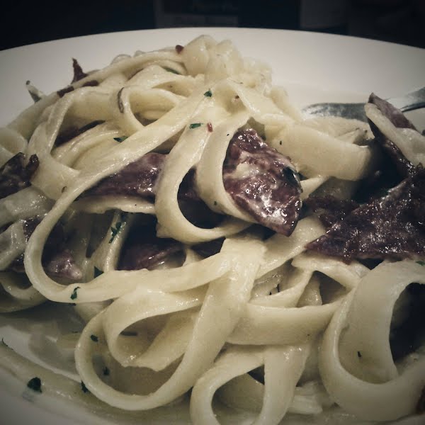 Beef fettuccini with creamy sauce