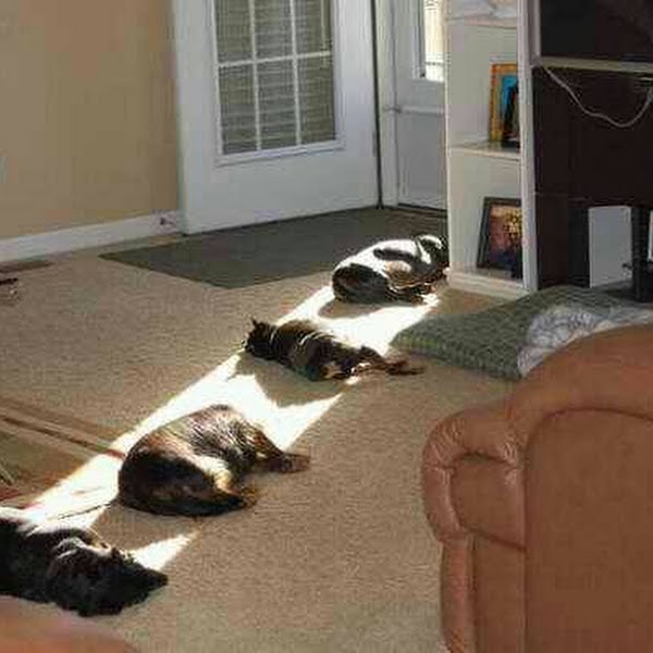 dogs are cool, they tan in a row