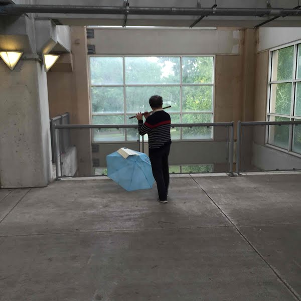 Talented Flautist In Parking Garage Alcove