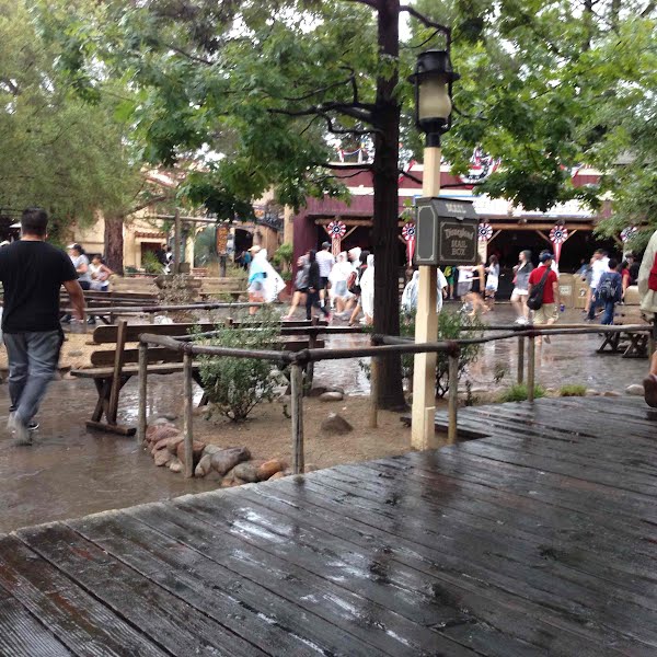 Rainy. Long lines. Still a little better than no Disneyland. A little.