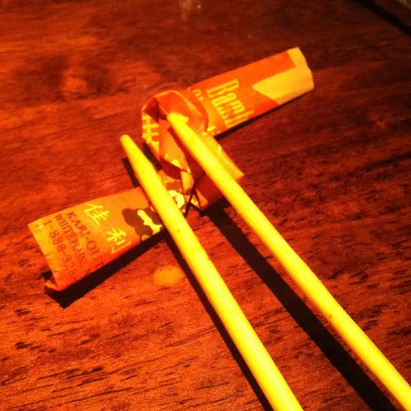 It was once a wrapper, now its a chopstick holder.