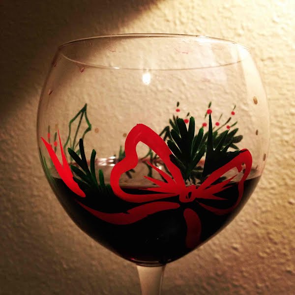 Night Cap In Hand-Painted Christmas Wine Glass