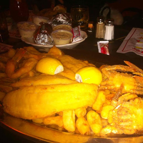 A HUGE plate of fried seafood