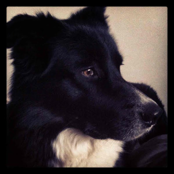 Husky/collie cross. Very friendly. Extremely soft fur. Smells like biscuits.